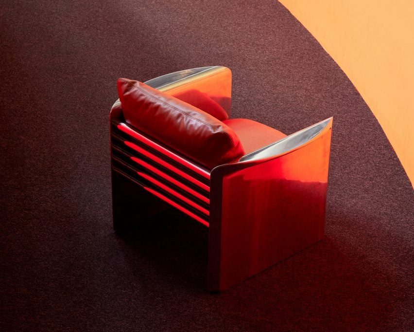 Том Фередей, дизайнер из Австралии, превратил алюминиевые отходы в изысканный предмет интерьера, используя процесс литья в песок. Б/у алюминий был расплавлен, отлит, отполирован, обложен пышными подушками и обит анилиновой кожей.