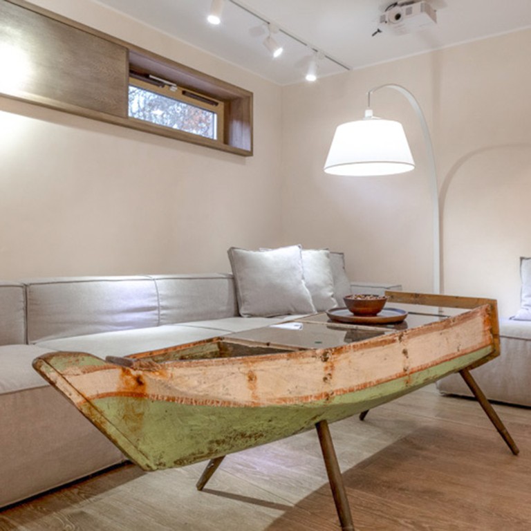 Мебель получается по-настоящему нетривиальной, имеет сложную фактуру фасадов, созданную самой жизнью и природой, в то же время диктуя человеку форму, привязанную к морскому транспорту.