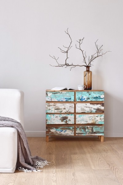 Материал получается поистине интересный. Породы тропических деревьев - тих, махагони, суар – относятся к ценным и со временем становятся только крепче, хотя их возраст к моменту реинкарнации в мебель тоже нельзя назвать юным: 15-50 лет. В добавок каждая щепка в их структуре пропитана историей (и рыбным запахом, но, благодаря обработке, покупатели об этом никогда не узнают).