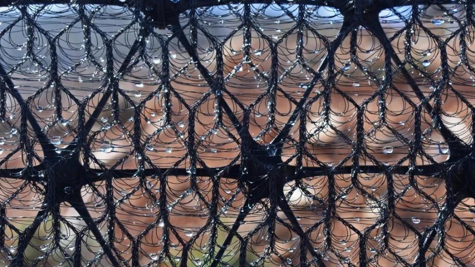 Хвоинки заменили фигурной сеткой. Ее совокупная площадь эффективно улавливает находящуюся в воздухе влагу, соединяет ее в капли, а потом и в ручейки, стекающие в резервуары. Сегодня из одного квадратного метра такого «ловца» удается выжать до 22 литров воды ежедневно.