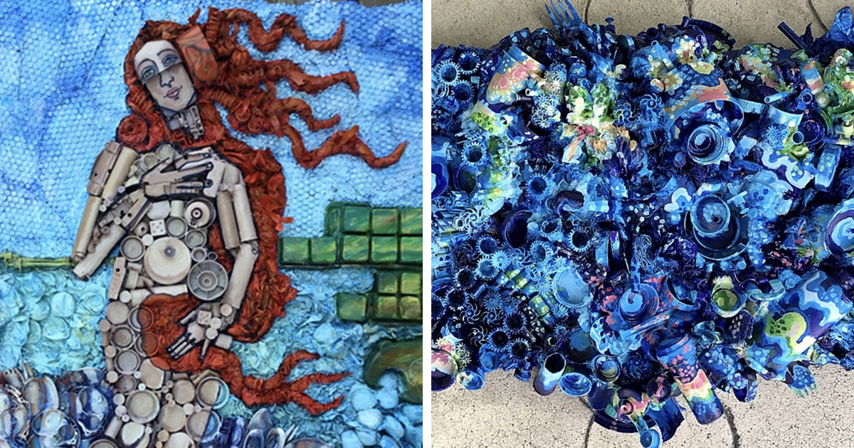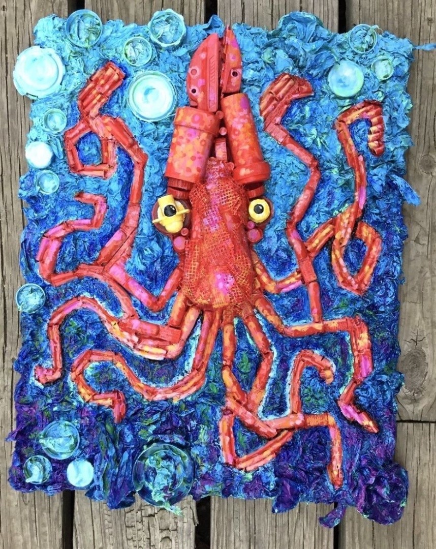 И если первым мы – компания Whitepack - занимаемся, второе не приемлем, то третье просто не умеем. Но умеет художница Кристин Роуз Карри из Колорадо. Она создала целую серию картин, за основу которых взяла отходы из пластика. Искать материалы для творчества не пришлось, о чем, к сожалению, Кристин хотела лишний раз напомнить. Но не только: художница внесла свой посильный вклад в экологию, радуясь, что «хотя бы этот пластиковый мусор не попадет в океан». Картины Кристин настолько замысловаты, что порой приходится потрудиться, чтобы отыскать, где же применены пластиковые отходы.