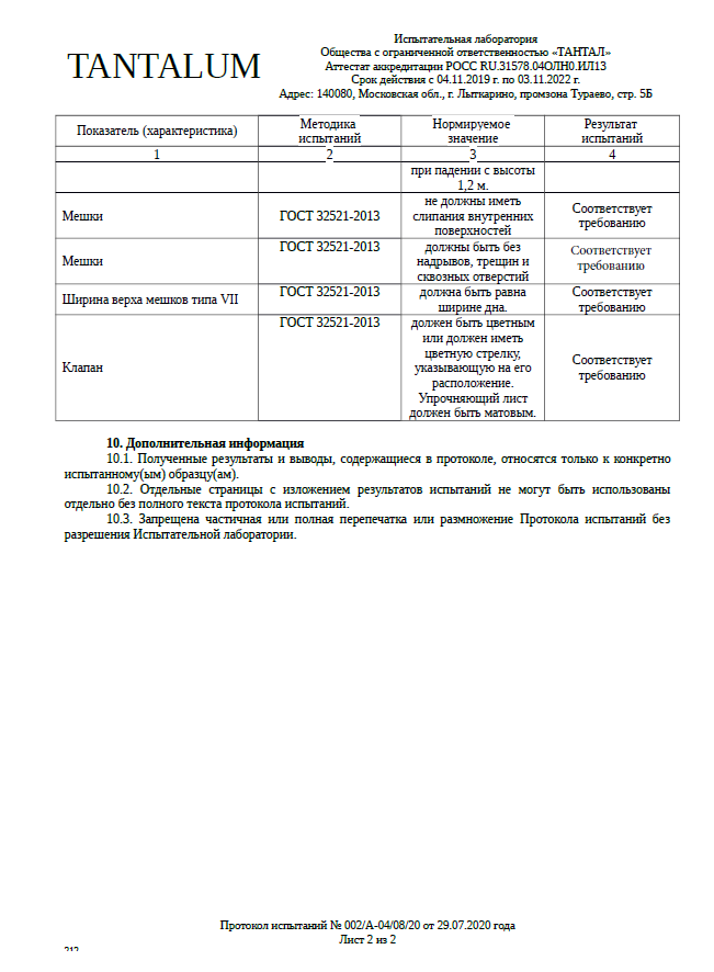 - Тип фасовки: