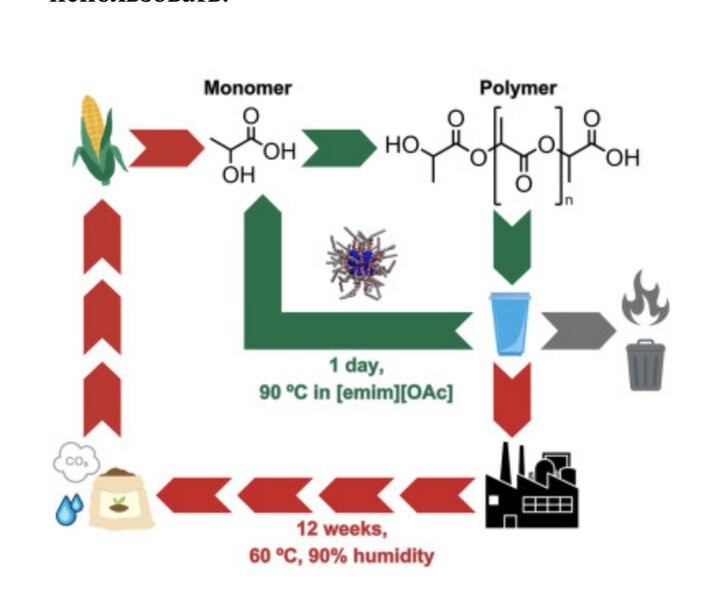 Всего 24 часа отныне нужно для того, чтобы ферменты разложили биопластик на основе полимолочной кислоты. Для сравнения: процесс компостирования в этом случае занимал 12 недель. На выходе после переработки получаются мономеры, пригодные для повторного использования, причем многократного, причем высокого качества!