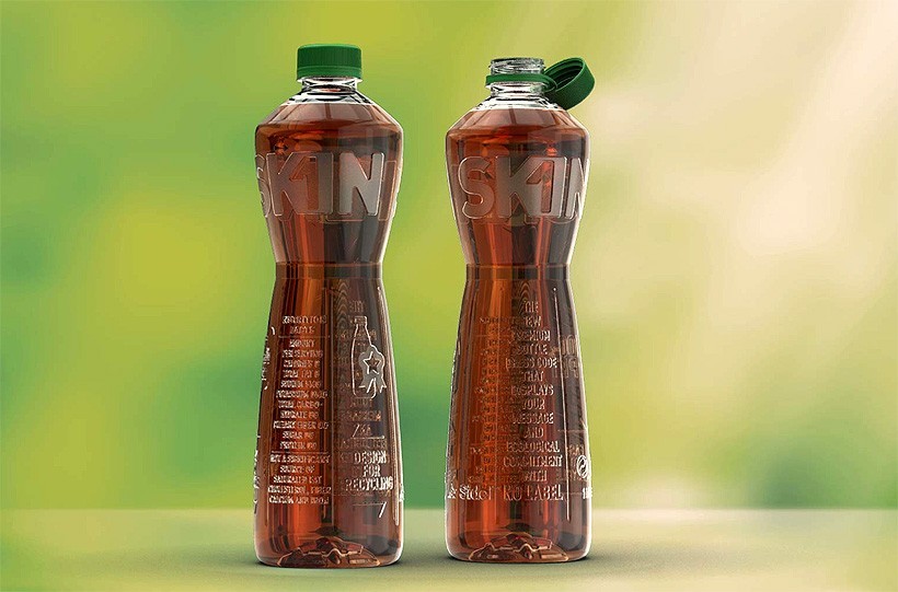 Французская компания Sidel, производитель пищевой упаковки, представила на суд рынка полимеров инновационную бутылку под брендом 1SKIN™. Она не только изготовлена из вторичного сырья, но и – что самое интересное – не нуждается в этикетке.