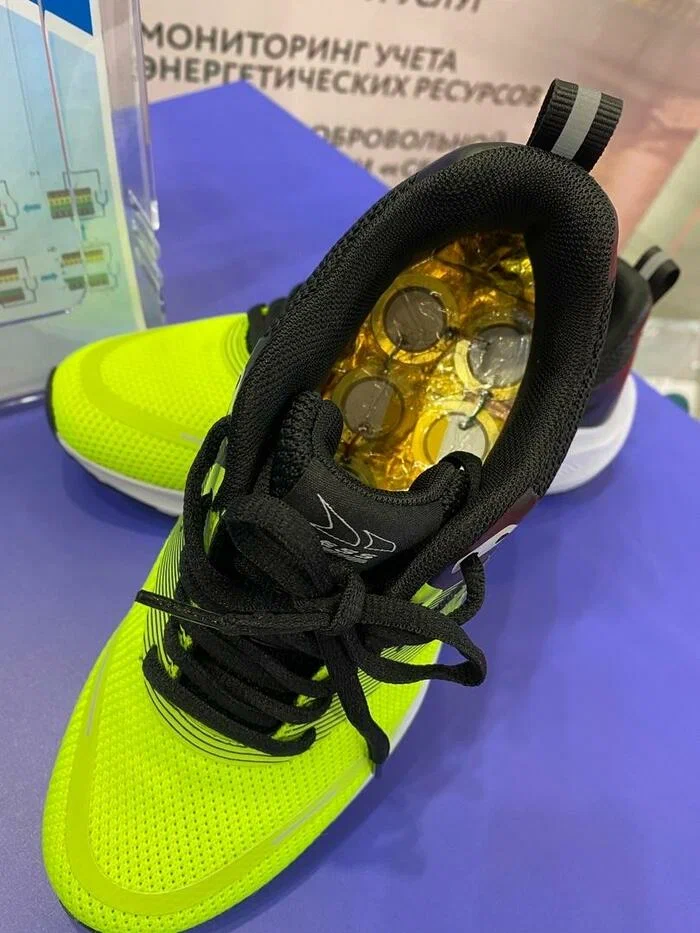 Первым опытным образцом, представленным на выставке «Энергетика и Электротехника - 2023» стали «умные энерго-кроссовки» Cyber Vestis. Человек бежит – они заряжаются.